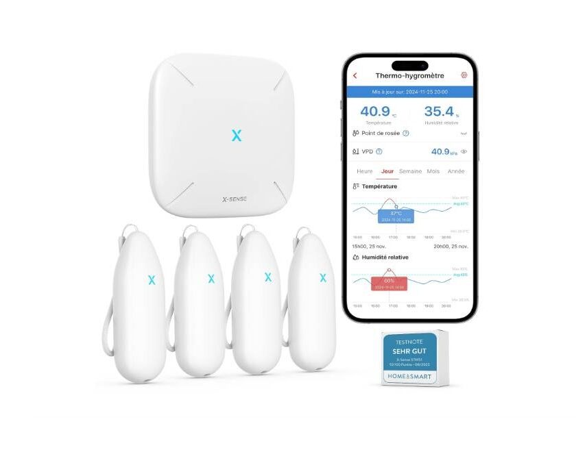 Température trop élevée, humidité excessive ou air trop sec : ces variations peuvent affecter le confort intérieur, les plantes ou certains objets sensibles. Le kit thermo-hygromètre connecté X-Sense STH55 permet de surveiller précisément la température et l’humidité dans plusieurs pièces grâce à sa station centrale et ses capteurs. Actuellement, ce kit avec station de base et 4 capteurs est proposé à 55,99 €, un tarif intéressant pour un système connecté complet. 🌡️
