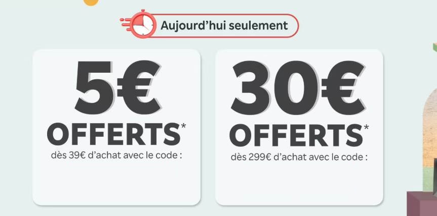 Nouvelle journée Club R avec une remise de 5€ sur Rakuten à partir de 39€ mais aussi une plus importante de 30€ à partir de 299€. Une double offre bien intéressante donc et qui vous permettra de faire une bonne affaire.