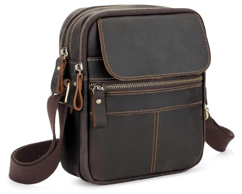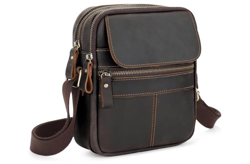 Avec ses 20 x 8 x 23 cm, il peut accueillir une tablette 8 pouces, un portefeuille, un téléphone, des clés, une batterie externe, des lunettes ou encore quelques petits livres. La bandoulière réglable jusqu’à 150 cm permet un port à l’épaule ou en travers du corps selon les préférences. Ce modèle est surtout adapté à ceux qui cherchent une sacoche homme cuir pas cher pour les trajets quotidiens, les sorties, le bureau ou les déplacements légers.