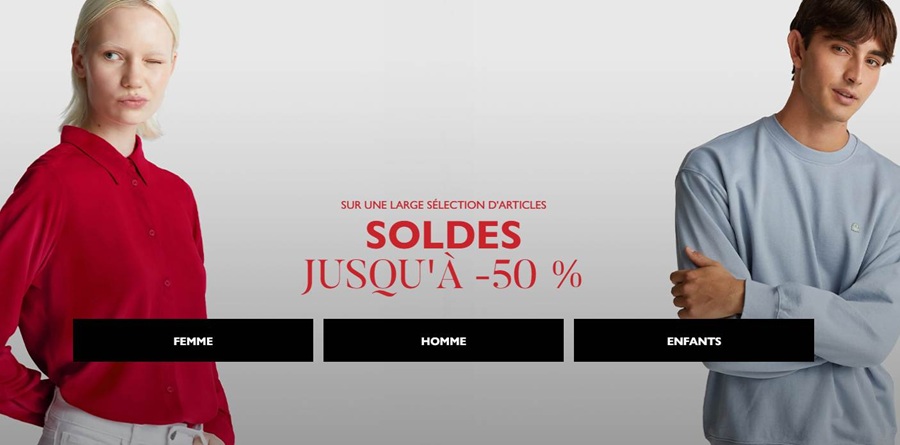 Pour les soldes de cette édition, la marque nous propose une très large sélection d’articles pour femme, homme et enfant démarqués avec des rabais allant jusqu’à -50%. De quoi trouver de bonnes affaires
